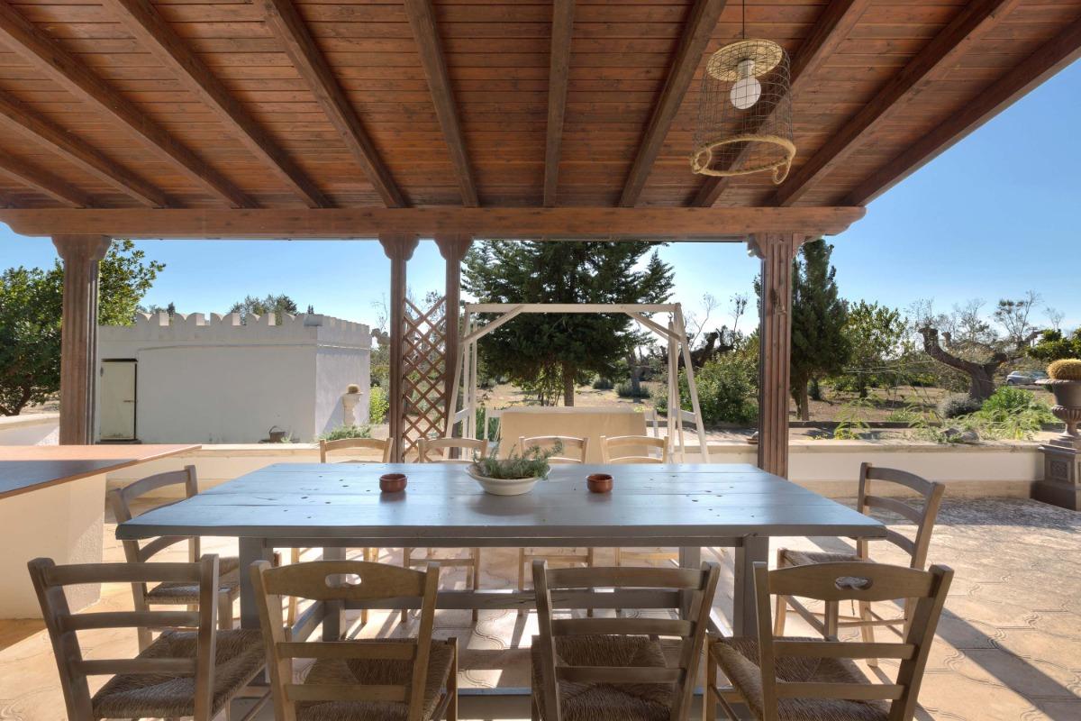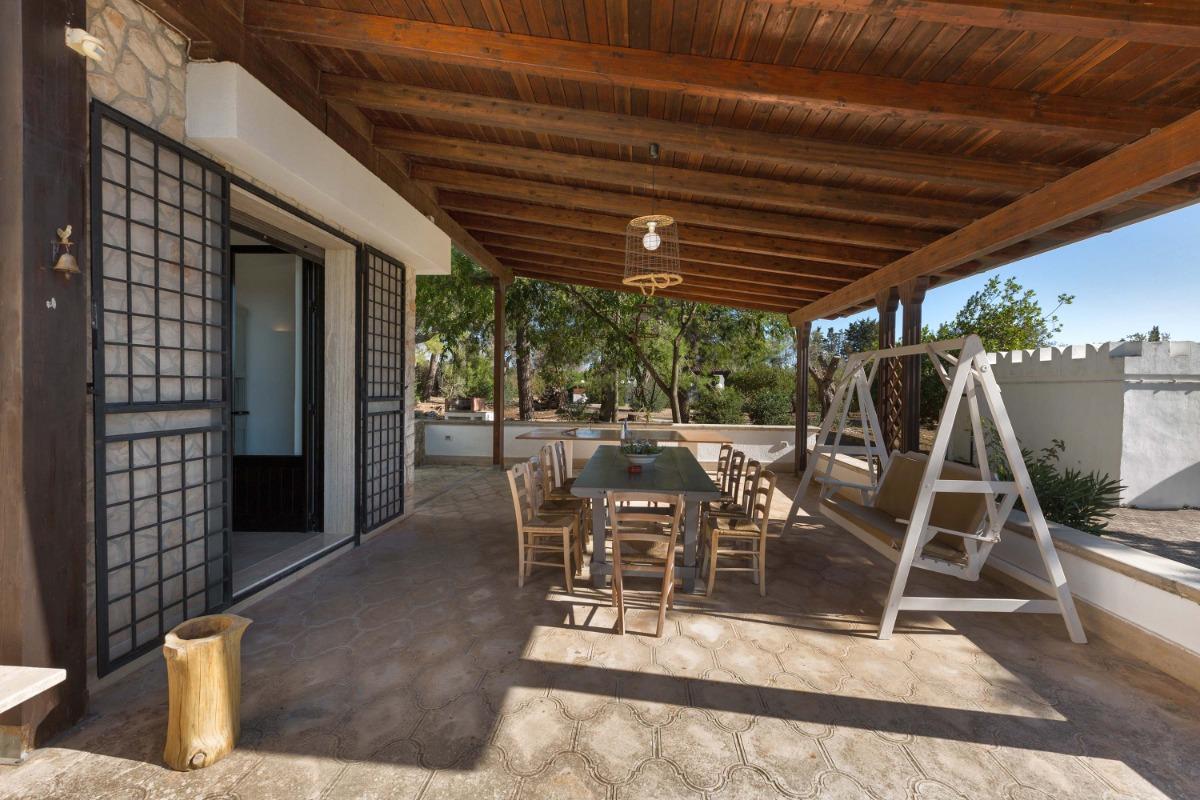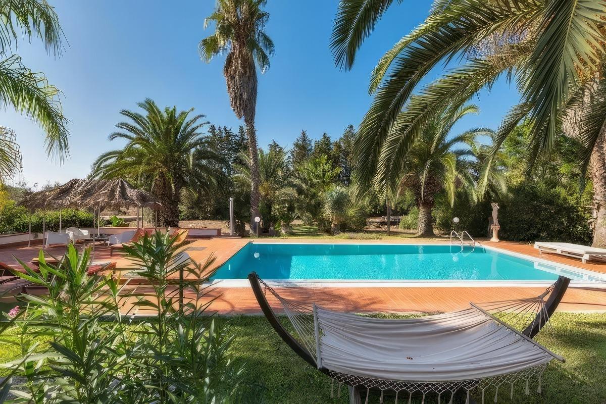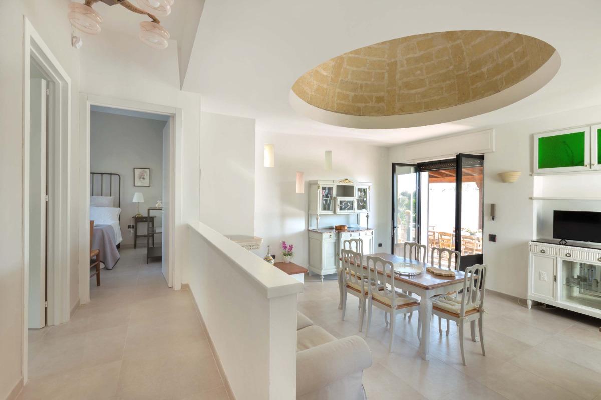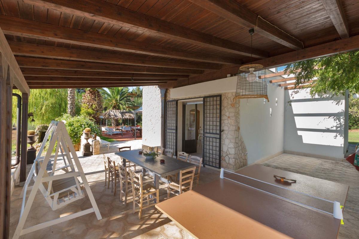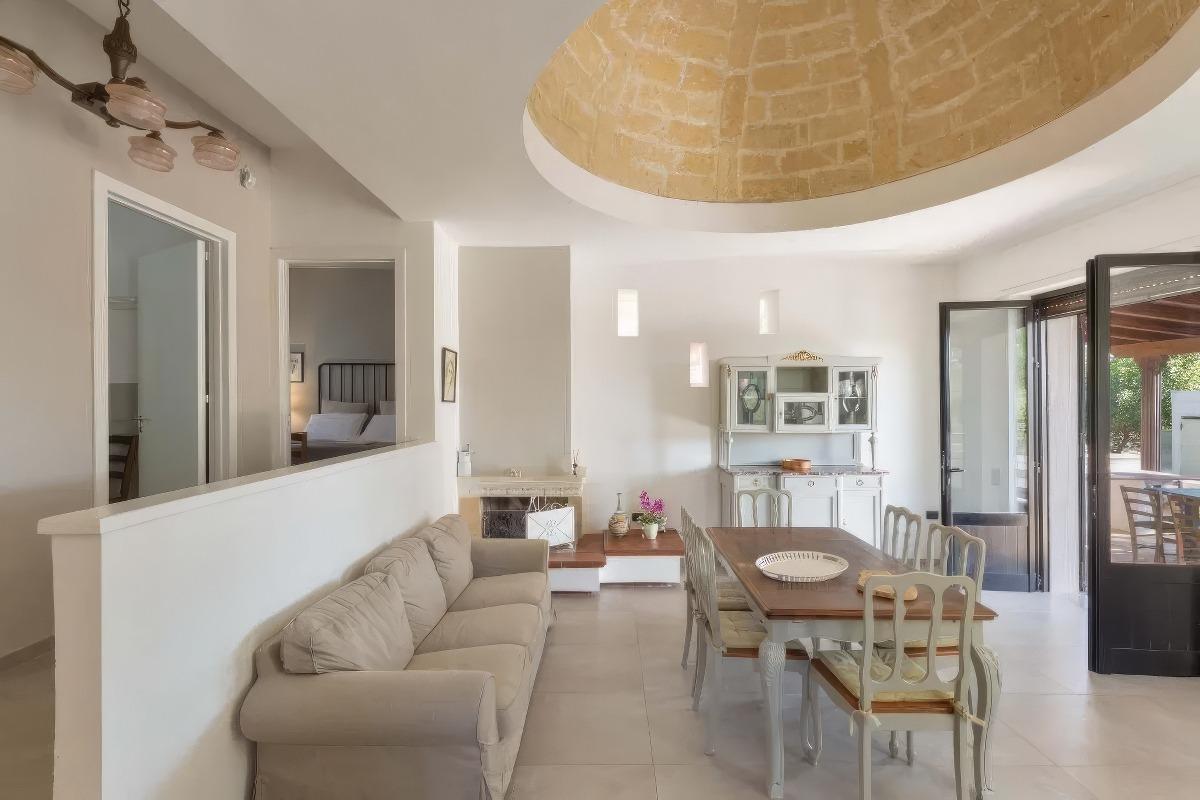 Villa con piscina ed un totale di 5 camere e 3 bagni. Ubicata nel cuore del Salento, in campagna ed a pochi km dalle spiagge sabbiose delle Marine di Ugento ed immersa nel verde della natura salentina. La piscina a sfioro è circondata da un giardino esotico di pregio orto-botanico. Sono presenti un totale di cinque camere da letto e tre bagni per una capacità ricettiva massima di dieci/undici posti letto.